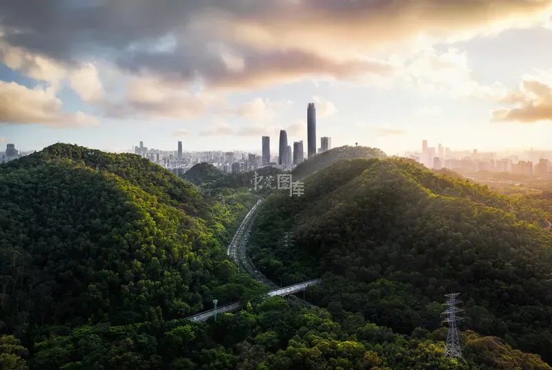 《绿美东莞》 从东城翠峰路眺望东莞中心区,地标建筑与公园绿地相得益彰。东莞坚持扩绿、兴绿、护绿并举,深入推进绿美东莞生态建设。 欧迪鹏/东莞图库